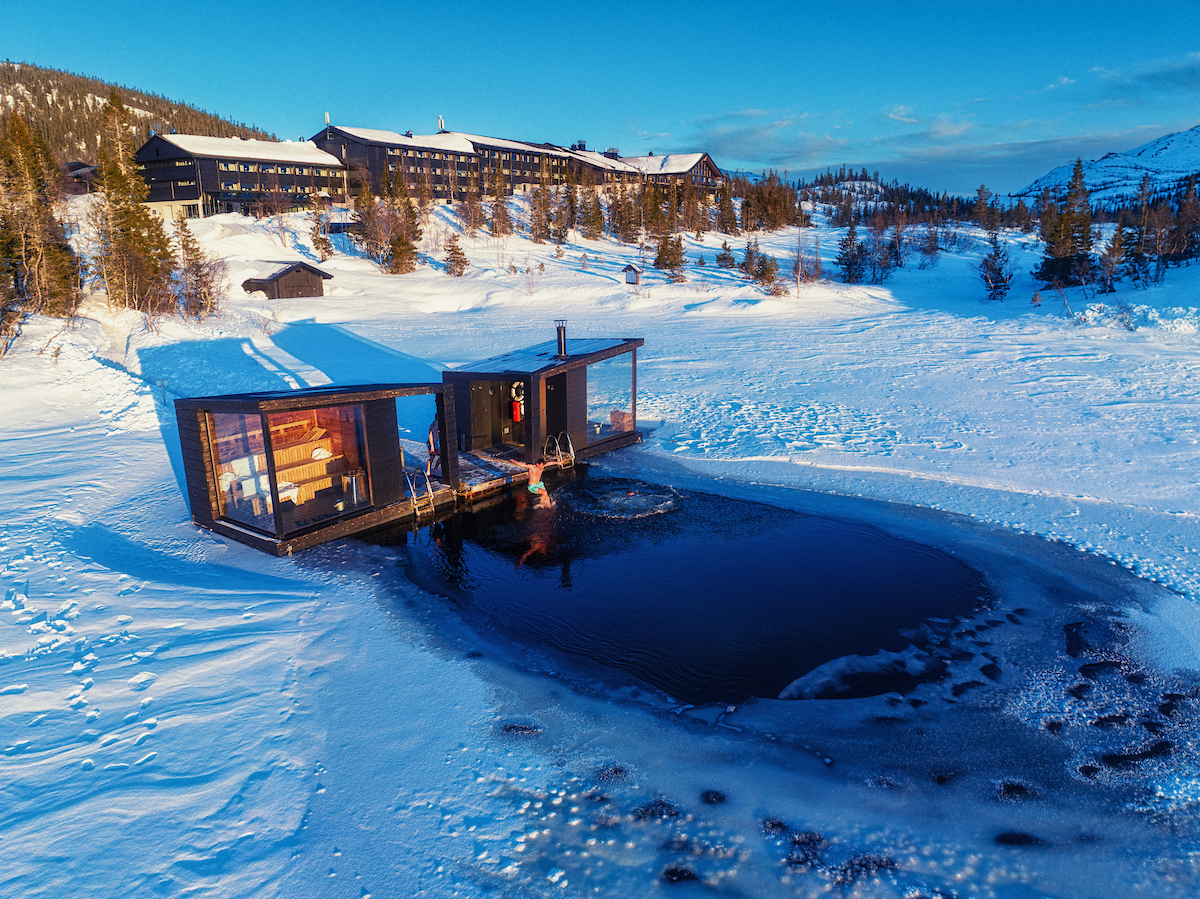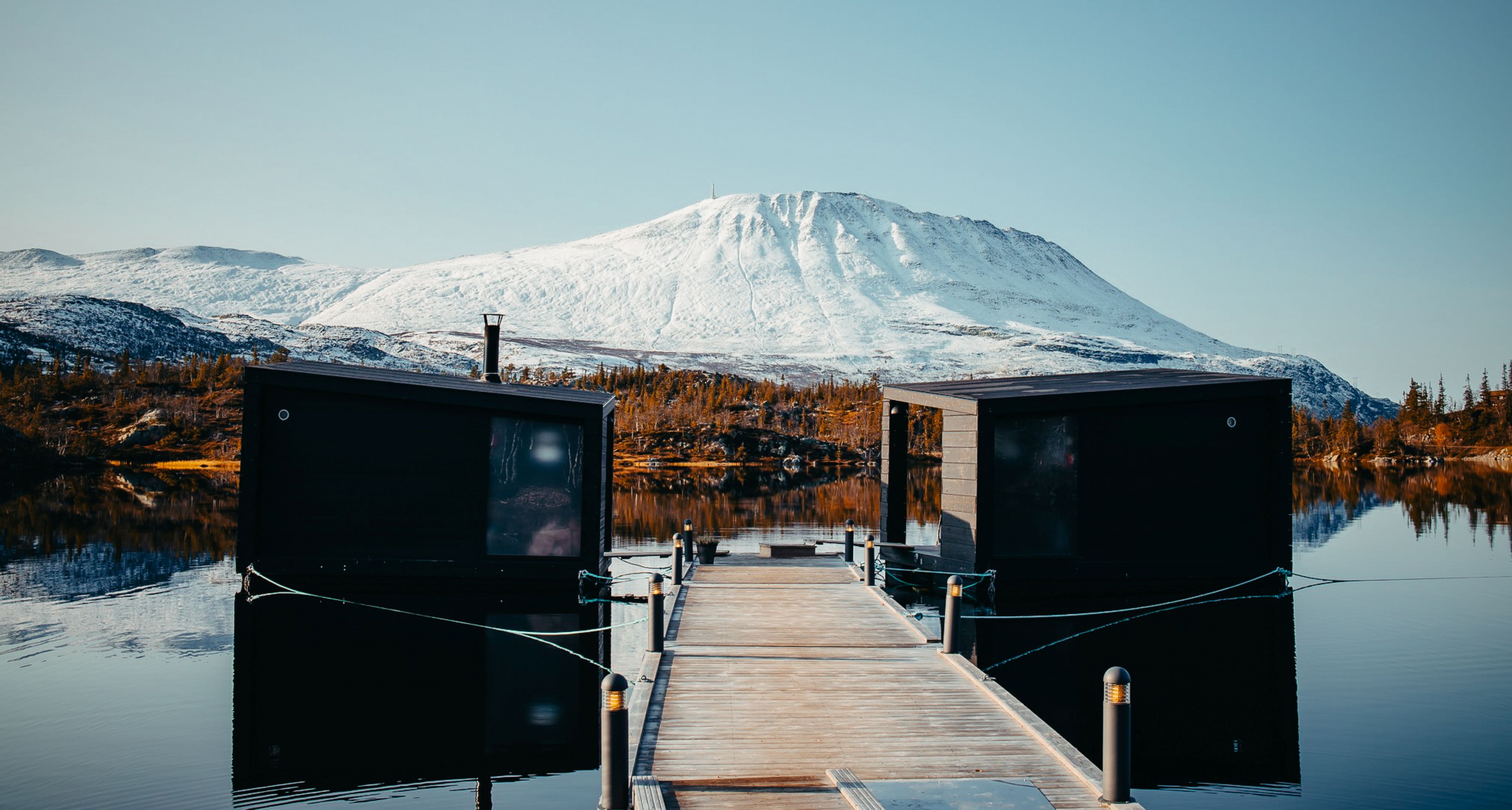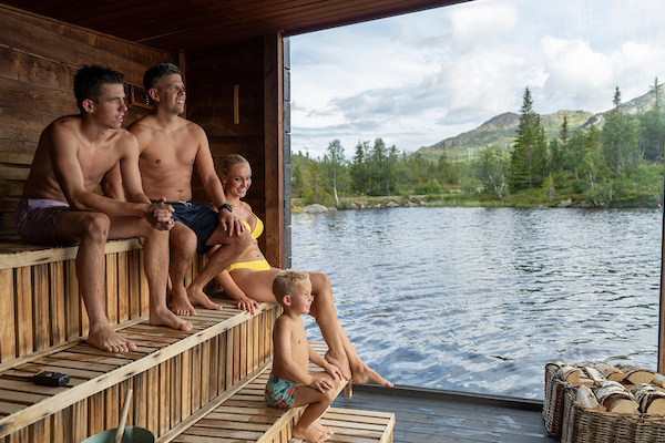 Enjoy the relaxation and majestic view of Gaustatoppen in our floating saunas. The warmth from the sauna and the refreshing water gives you an exhilarating experience.