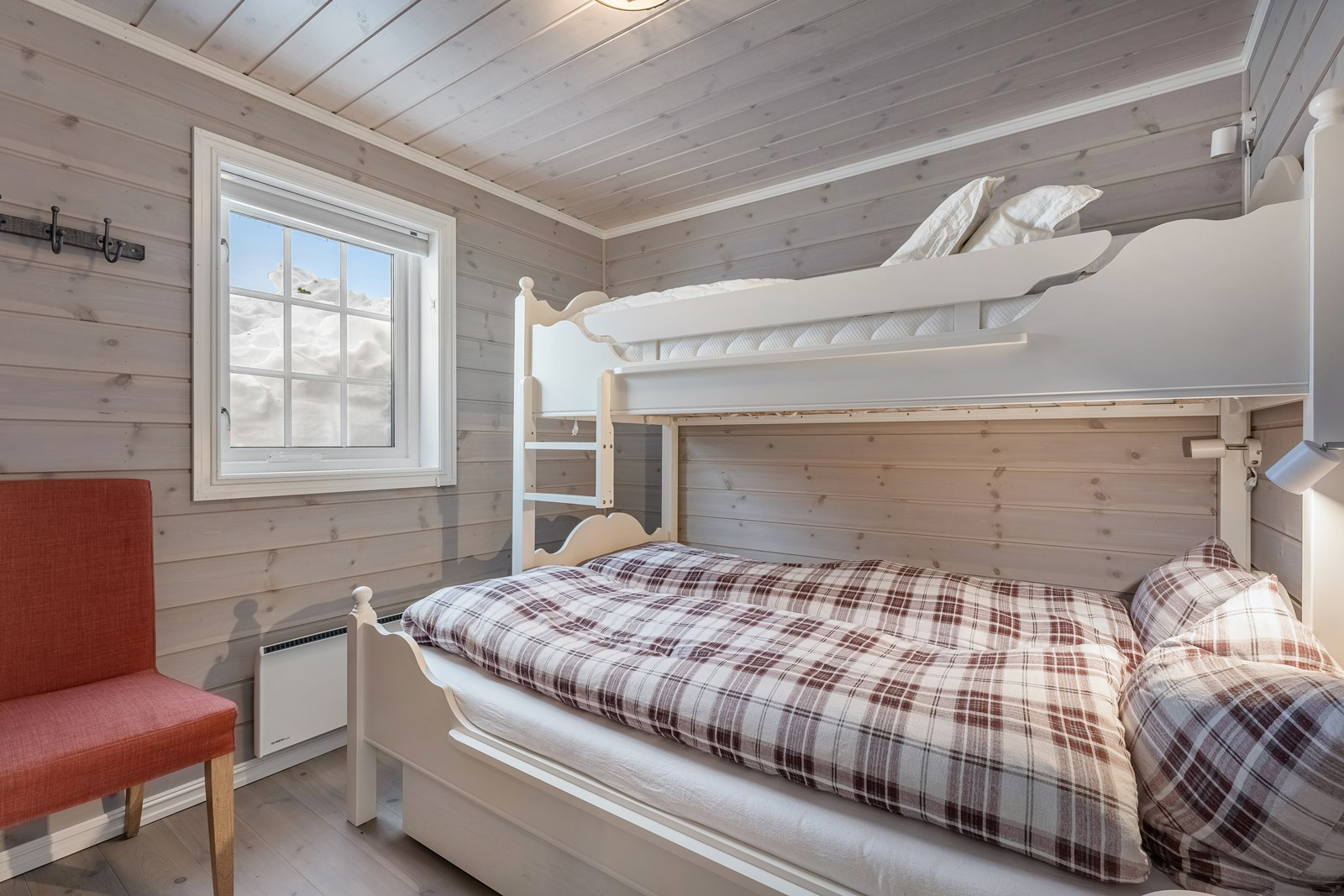 This spacious 130 sqm cabin with ski in/ski out* is perfect for accommodating up to 12 guests and boasts 5 cozy bedrooms, an open kitchen- and living room area with a fireplace, separate TV-room and Wi-Fi**. The fully equipped kitchen features kitchen utensils, stove, refrigerator/freezer, ...