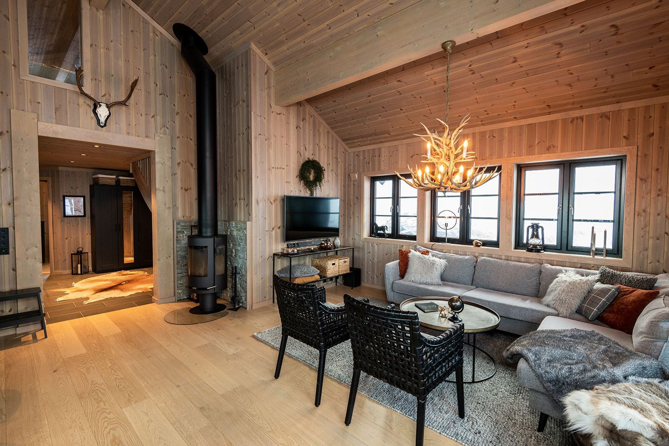 This spacious 110 sqm cabin is perfect for accommodating up to 10 guests and boasts 4 cozy bedrooms, an open kitchen- and living room area with a fireplace, dining table, sofa, TV and Wi-Fi*. The fully equipped kitchen features kitchen utensils, stove, refrigerator/freezer, dishwasher, and coffee ...